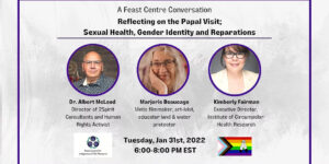 The Feast Centre’s aim of decolonizing Indigenous history and research related to sexually transmitted and blood borne infections (STBBI) will continue in this new year. This online session will explore the impact of the seven Euro-Christian churches that imposed western values on Indigenous peoples through the Indian residential and day school era. The recent visit of Pope Francis to Canada to respond to the harms and crimes perpetrated by the Roman Catholic Church against Indigenous children and their families will be the focus of this panel’s conversation. The re-emergence of Indigenous values, teachings, and life philosophy will be discussed with regard to 2Spirit/Indigenous LGBTQ people, gender-based violence, feminism, matriarchy, midwifery, gender identity, sexual health research, and reparations.